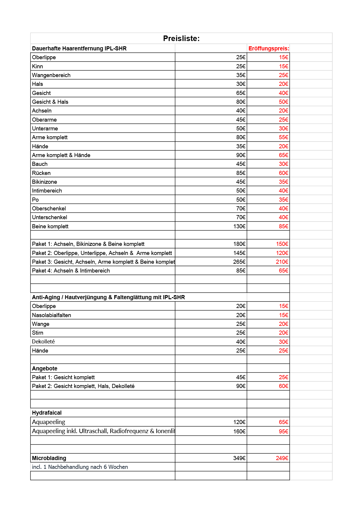 alle angegebenen Preise verstehen sich inklusive Mehrwertsteuer ! Die Angebotspreise gelten nur im angegebenen Zeitraum.
